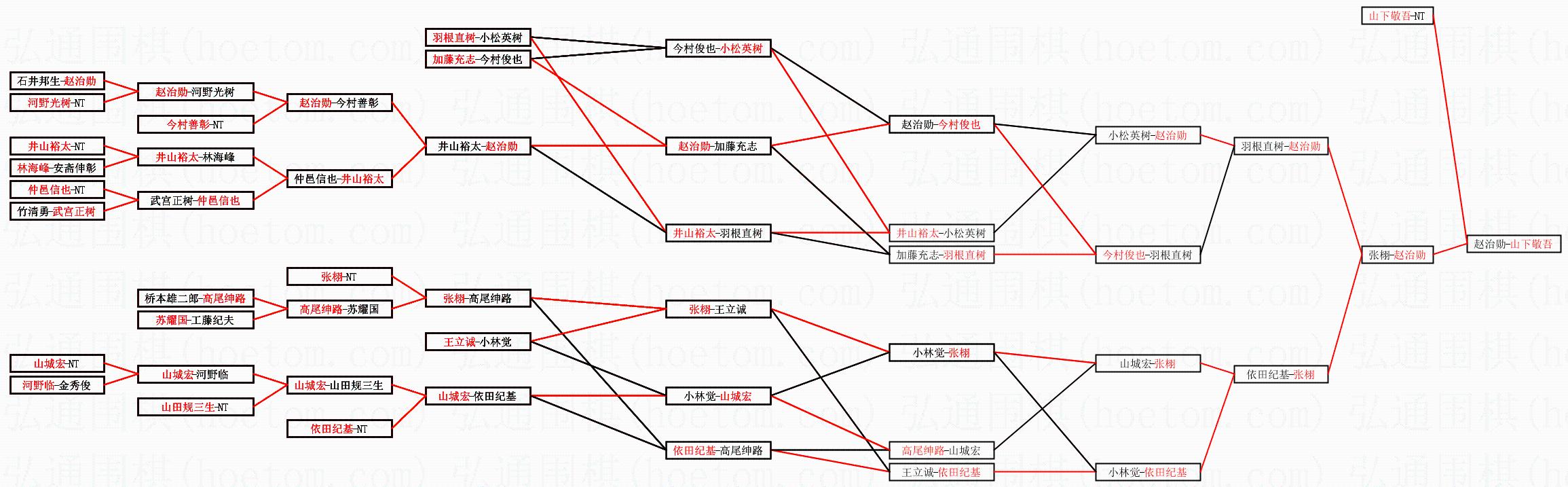 | 1.山下敬吾获得冠军,赵治勋获得亚军。决赛比分:山下敬吾4:3赵治勋。棋局: | ||