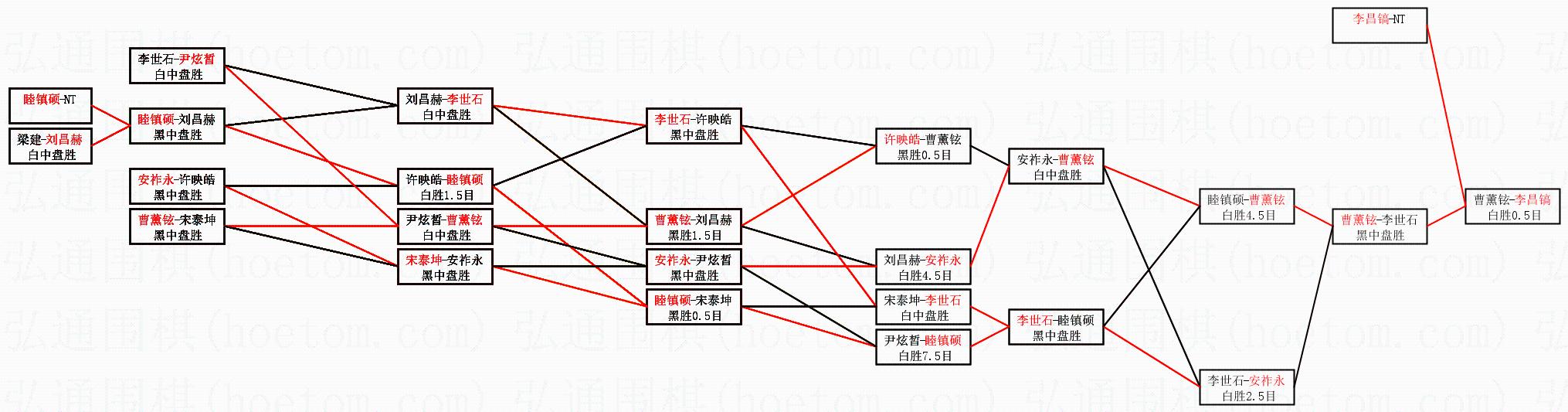 | 1.李昌镐获得冠军,曹薰铉获得亚军。决赛比分:李昌镐3:2曹薰铉。棋局: | ||