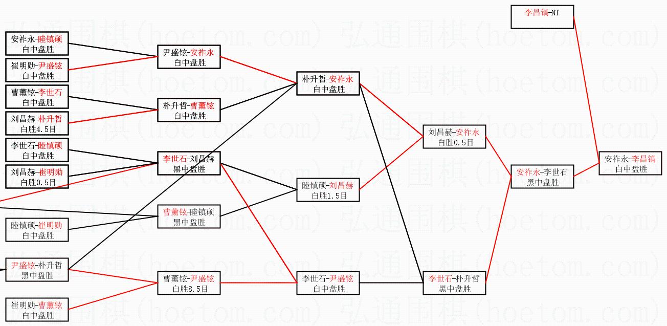 | 3.下半区半决赛安祚永获胜,比分:安祚永1:0李世石。棋局: | ||