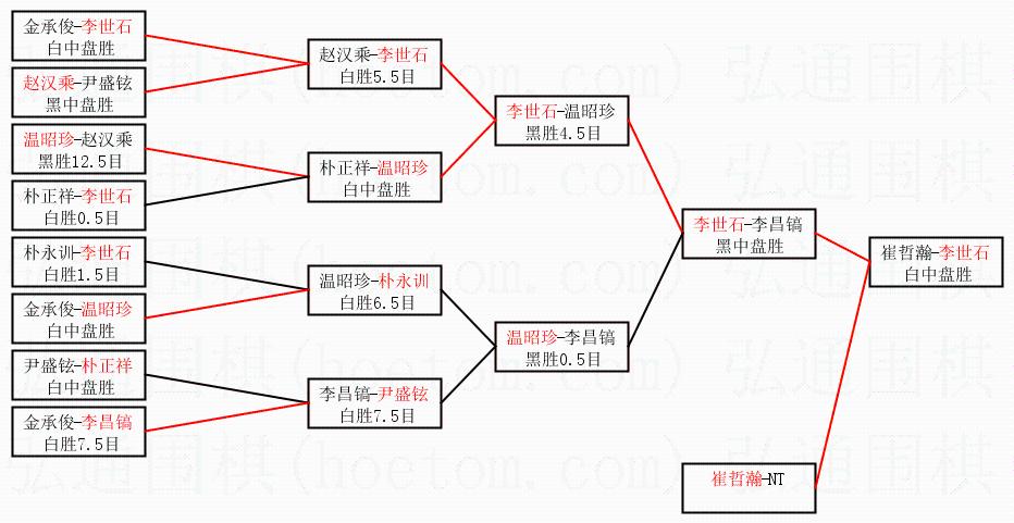1.李世石获得冠军,崔哲瀚获得亚军。决赛比分:李世石3:0崔哲瀚。棋局: