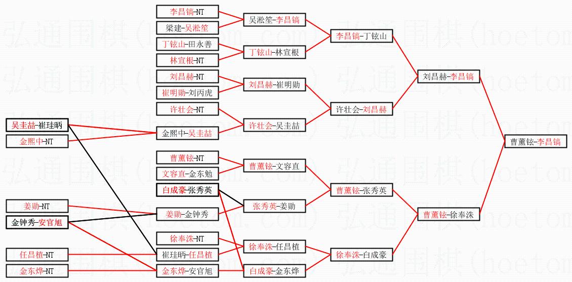 1.李昌镐获得冠军,曹薰铉获得亚军。决赛比分:李昌镐3:2曹薰铉。棋局: