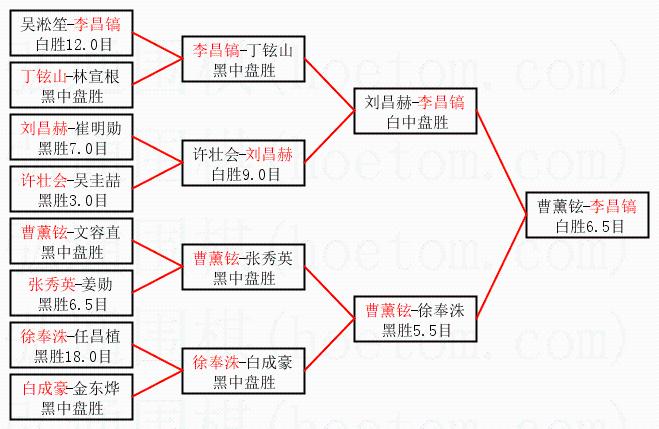 | 1.李昌镐获得冠军,曹薰铉获得亚军。决赛比分:李昌镐3:2曹薰铉。棋局: | ||
