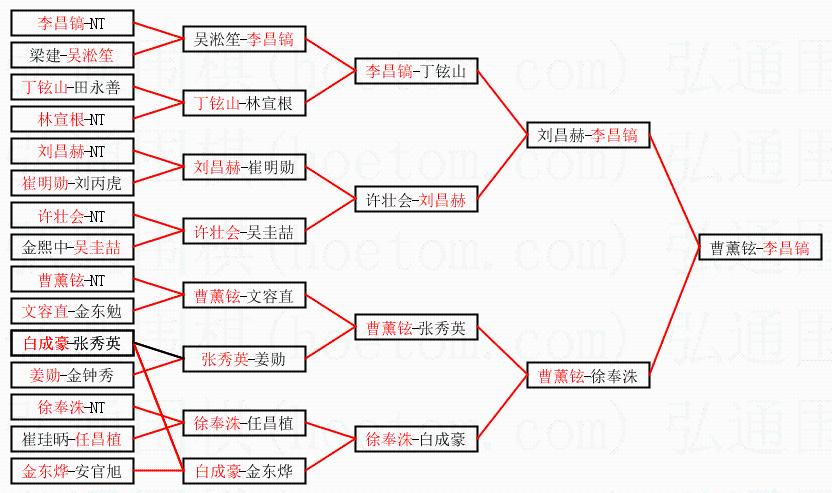 | 1.李昌镐获得冠军,曹薰铉获得亚军。决赛比分:李昌镐3:2曹薰铉。棋局: | ||