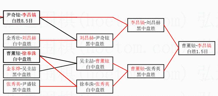 | 1.李昌镐获得冠军,曹薰铉获得亚军。决赛比分:李昌镐3:0曹薰铉。棋局: | ||