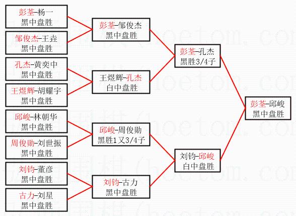| 1.彭荃获得冠军,邱峻获得亚军。决赛比分:彭荃2:1邱峻。棋局: | ||