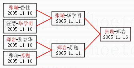 1.张璇获得冠军,郑岩获得亚军。决赛比分:张璇2:0郑岩。棋局: