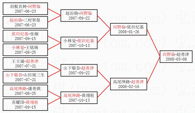3.下半区半决赛赵善津获胜,比分:赵善津1:0高尾绅路。棋局: