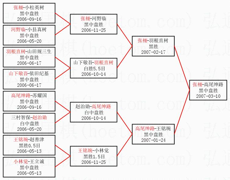 1.张栩获得冠军,高尾绅路获得亚军。决赛比分:张栩1:0高尾绅路。棋局: