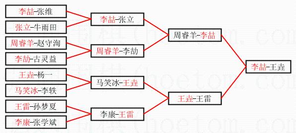 | 1.李喆获得冠军,王垚获得亚军。决赛比分:李喆2:1王垚。棋局: | ||