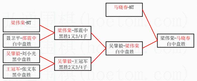 | 3.下半区半决赛梁伟棠获胜,比分:梁伟棠2:0吴肇毅。棋局: | ||