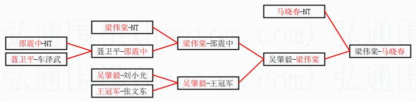 | 1.马晓春获得冠军,梁伟棠获得亚军。决赛比分:马晓春3:1梁伟棠。棋局: | ||
