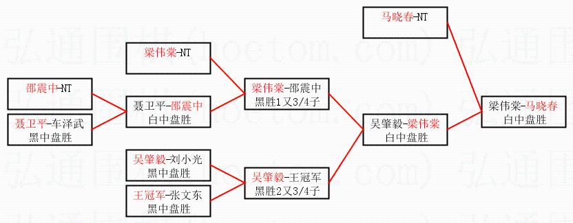| 1.马晓春获得冠军,梁伟棠获得亚军。决赛比分:马晓春3:1梁伟棠。棋局: | ||