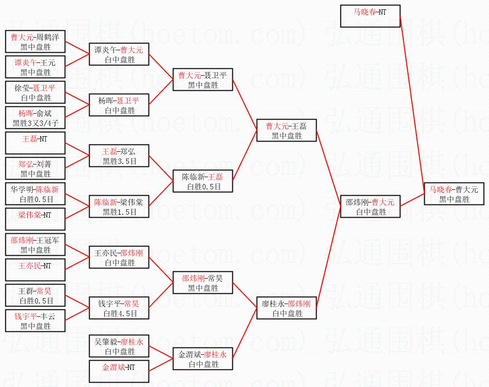 1.马晓春获得冠军,曹大元获得亚军。决赛比分:马晓春3:0曹大元。棋局: