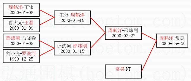 | 1.周鹤洋获得冠军,常昊获得亚军。决赛比分:周鹤洋4:0常昊。棋局: | ||