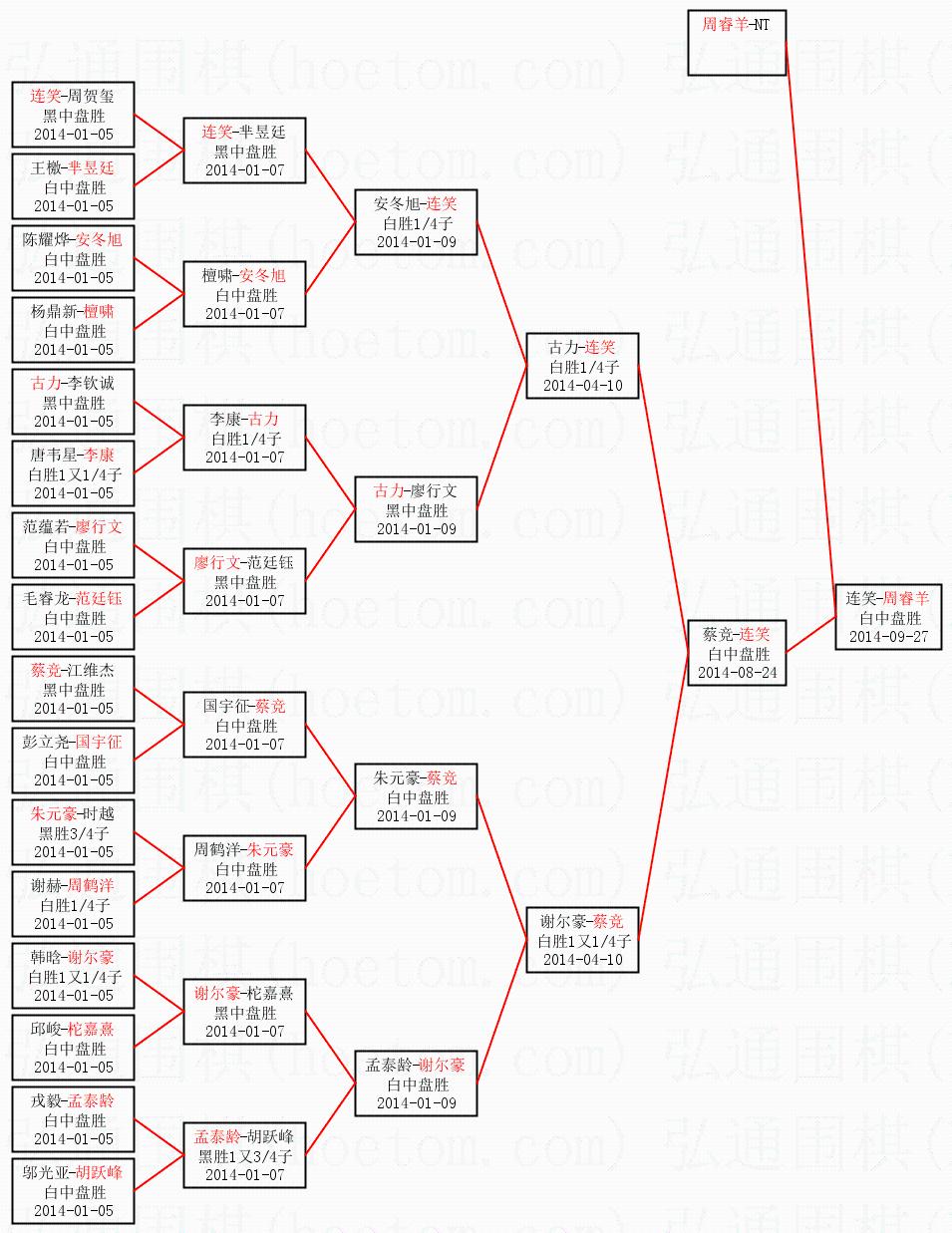 | 2014-08-24 蔡竞-连笑 白中盘胜 | ||