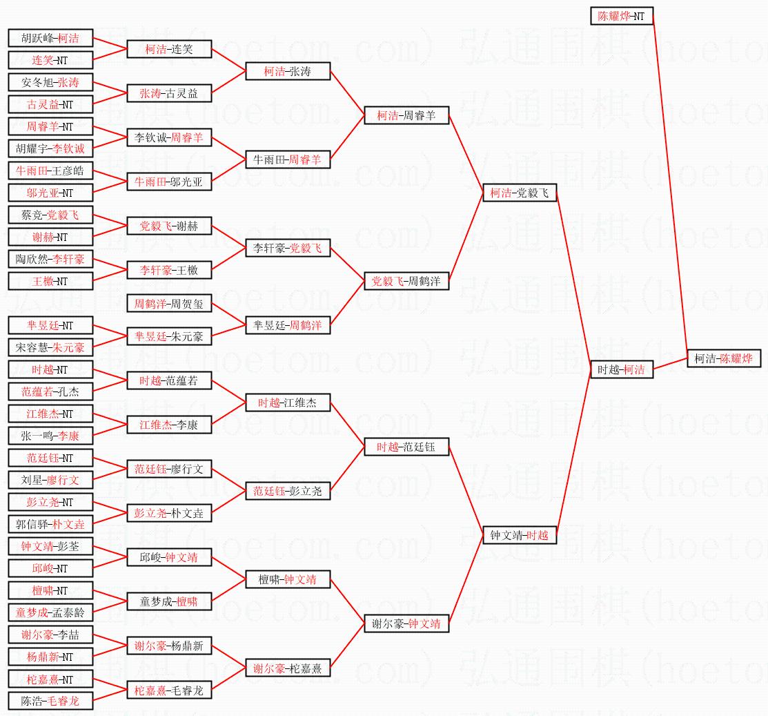 1.陈耀烨获得冠军,柯洁获得亚军。决赛比分:陈耀烨2:1柯洁。棋局: