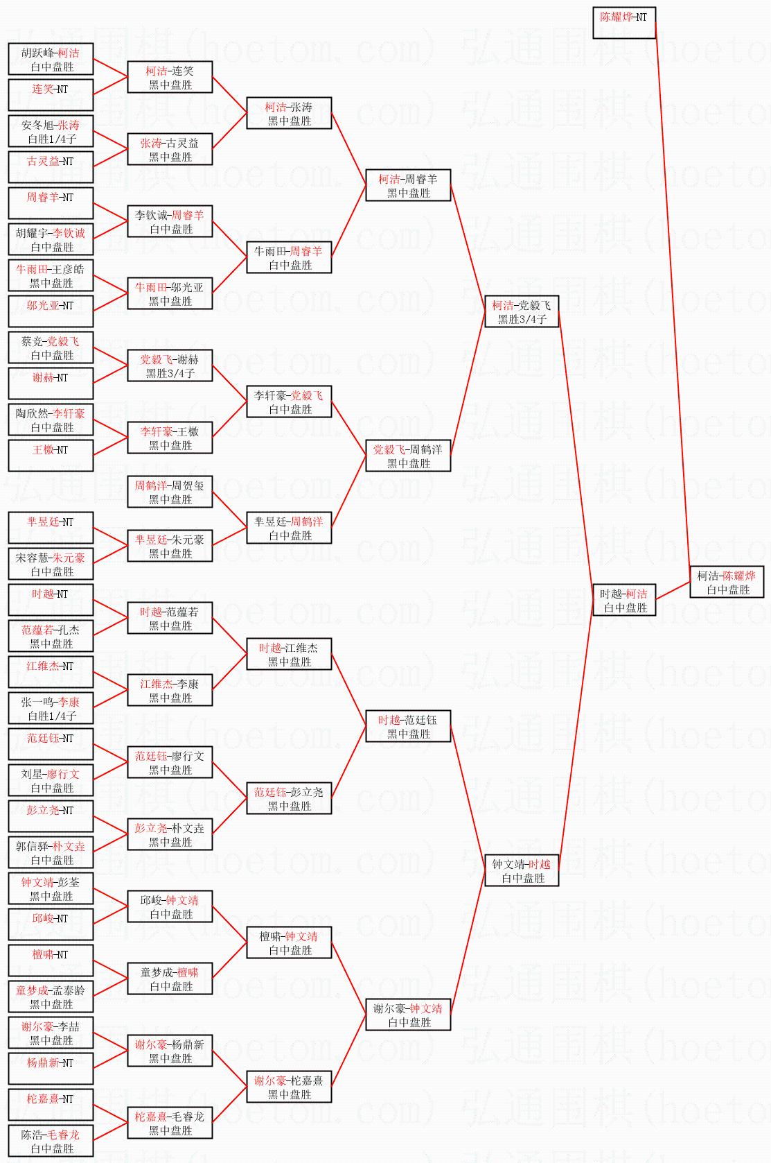 1.陈耀烨获得冠军,柯洁获得亚军。决赛比分:陈耀烨2:1柯洁。棋局:
