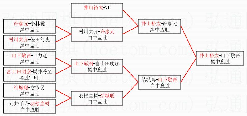 2.上半区半决赛井山裕太获胜, 比分:井山裕太 1:0 许家元。棋局: