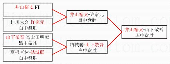 2.上半区半决赛井山裕太获胜, 比分:井山裕太 1:0 许家元。棋局: