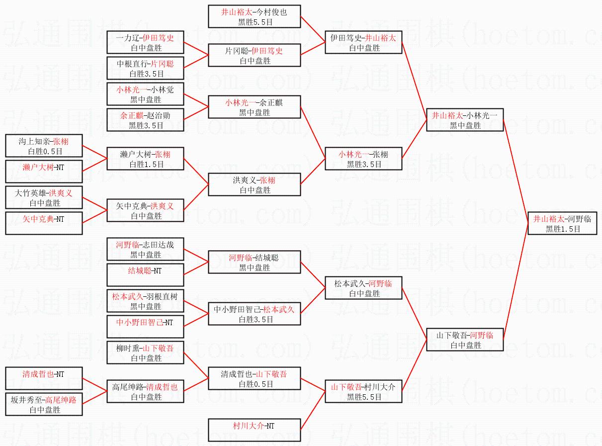 2.上半区半决赛井山裕太获胜, 比分:井山裕太 1:0 小林光一。棋局: