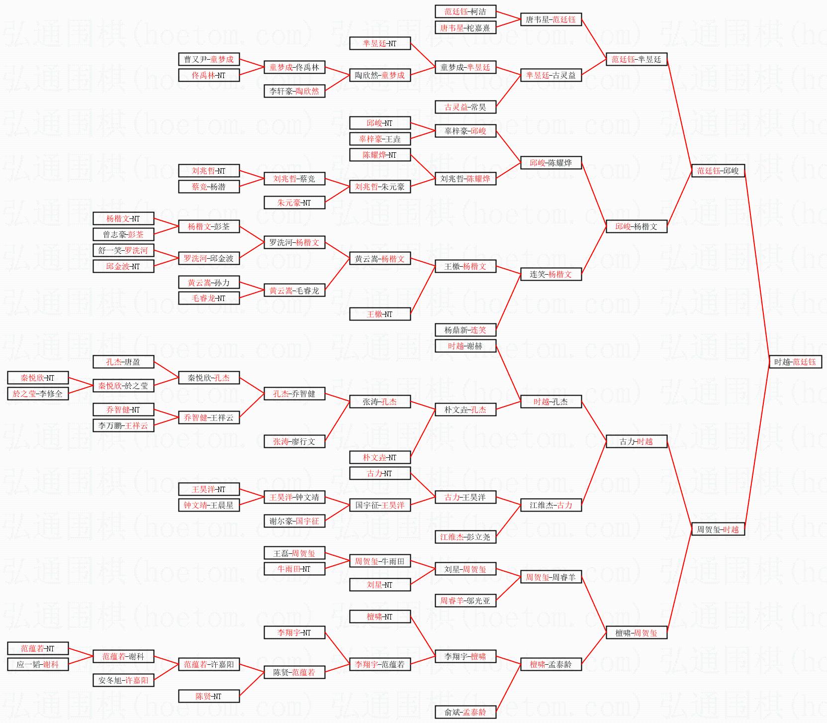 1.范廷钰获得冠军,时越获得亚军。决赛比分:范廷钰1:0时越。棋局: