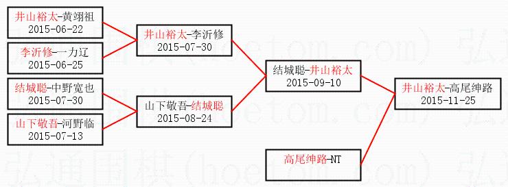 1.井山裕太获得冠军,高尾绅路获得亚军。决赛比分:井山裕太3:0高尾绅路。棋局: