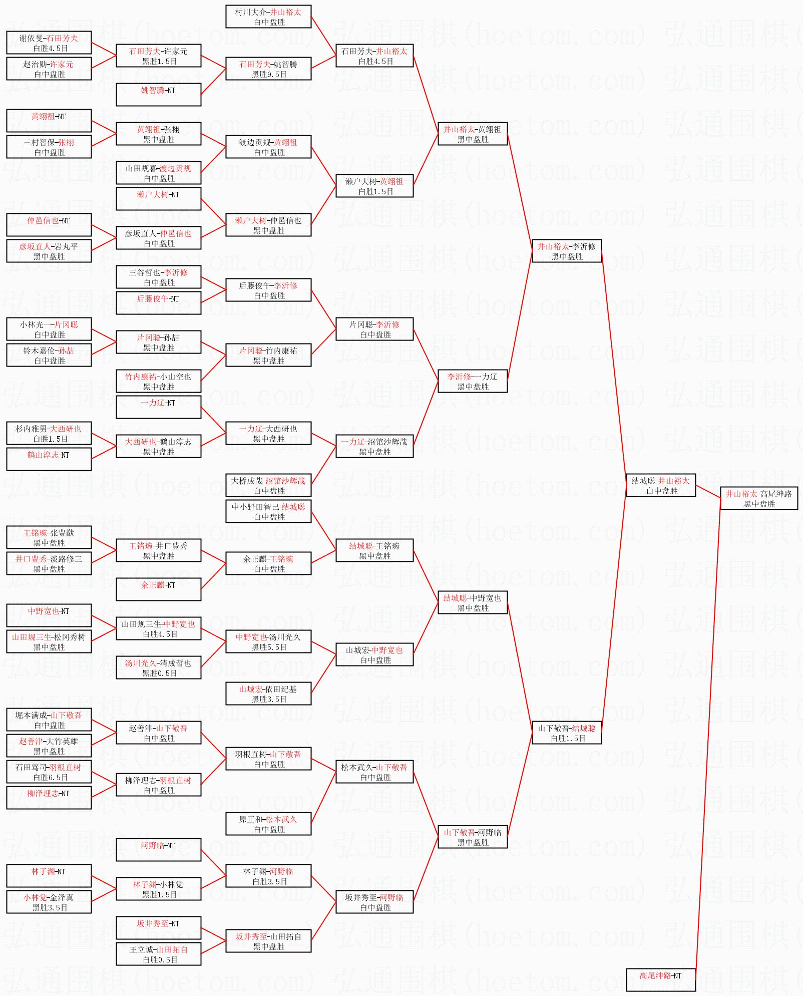 2.上半区半决赛井山裕太获胜, 比分:井山裕太 1:0 结城聪。棋局: