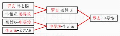 2.上半区半决赛罗玄获胜, 比分:罗玄 1:0 姜昇旼。棋局: