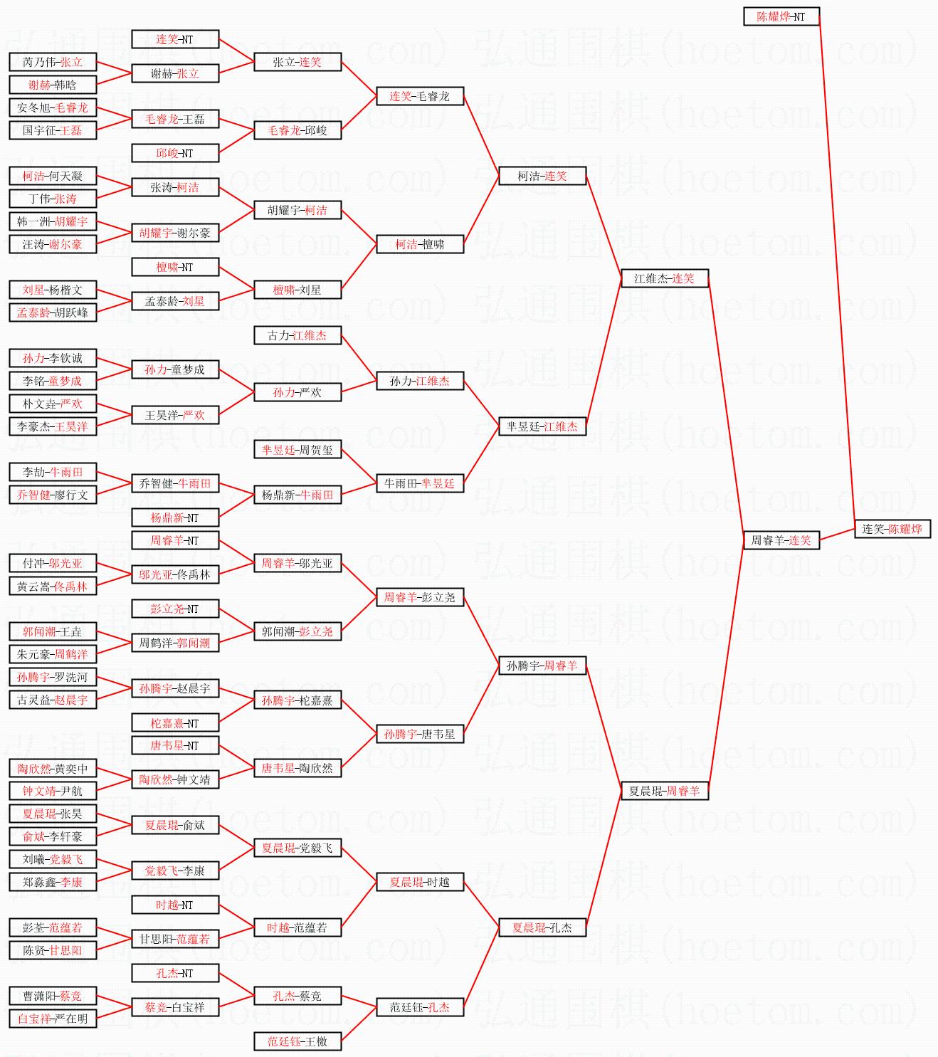| 1.陈耀烨获得冠军,连笑获得亚军。决赛比分:陈耀烨3:1连笑。棋局: | ||