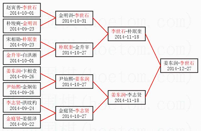 | 1.李世石获得冠军,姜东润获得亚军。决赛比分:李世石2:1姜东润。棋局: | ||