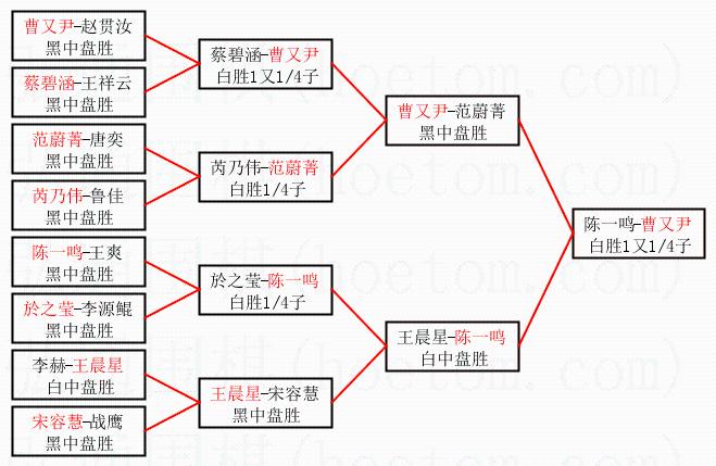 | 1.曹又尹获得冠军,陈一鸣获得亚军。决赛比分:曹又尹2:1陈一鸣。棋局: | ||