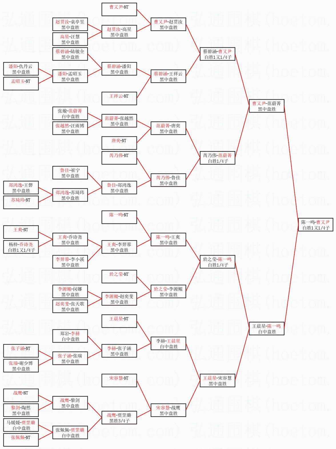 | 1.曹又尹获得冠军,陈一鸣获得亚军。决赛比分:曹又尹2:1陈一鸣。棋局: | ||