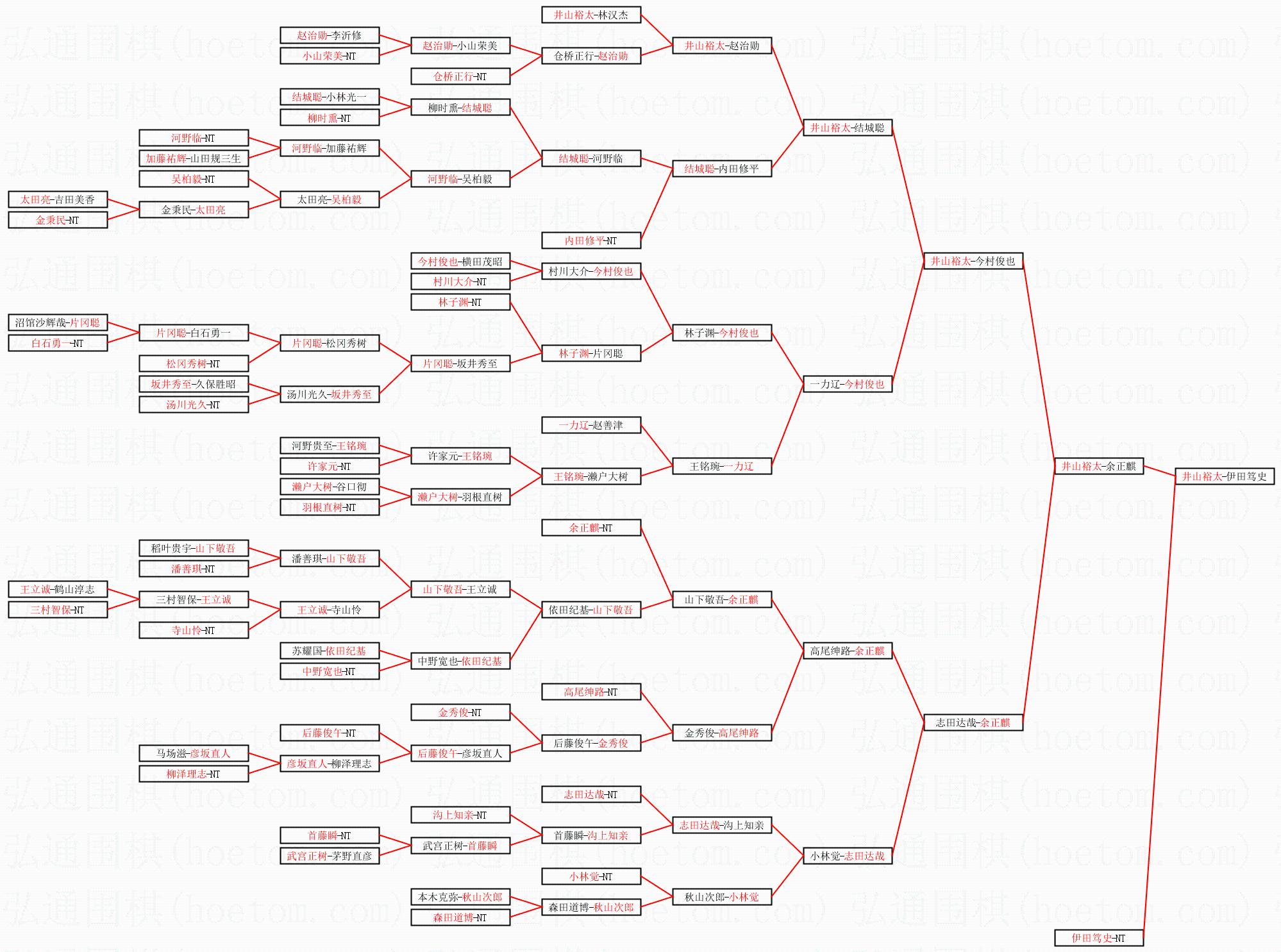 | 1.井山裕太获得冠军,伊田笃史获得亚军。决赛比分:井山裕太3:1伊田笃史。棋局: | ||