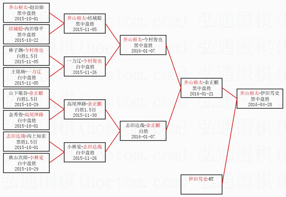 | 1.井山裕太获得冠军,伊田笃史获得亚军。决赛比分:井山裕太3:1伊田笃史。棋局: | ||