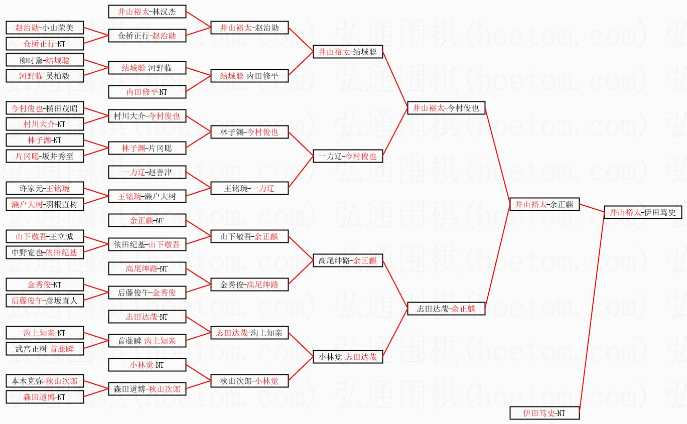 | 1.井山裕太获得冠军,伊田笃史获得亚军。决赛比分:井山裕太3:1伊田笃史。棋局: | ||