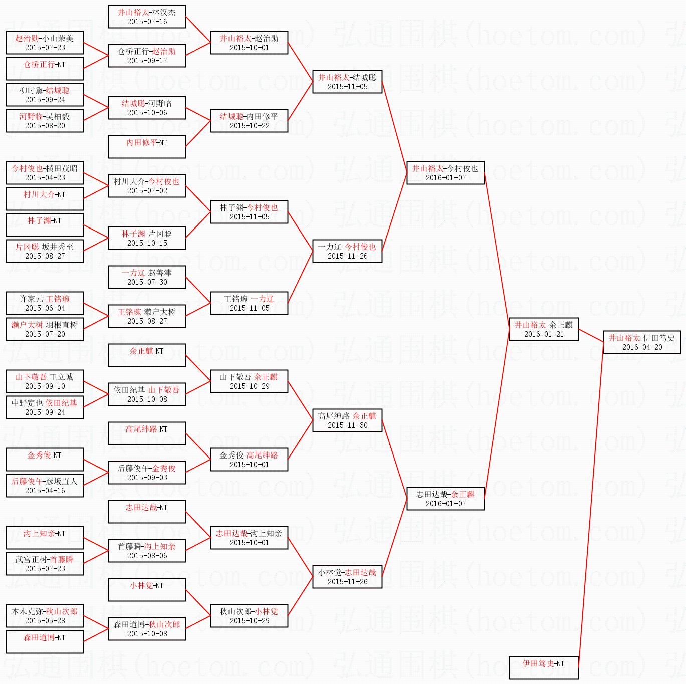 | 1.井山裕太获得冠军,伊田笃史获得亚军。决赛比分:井山裕太3:1伊田笃史。棋局: | ||