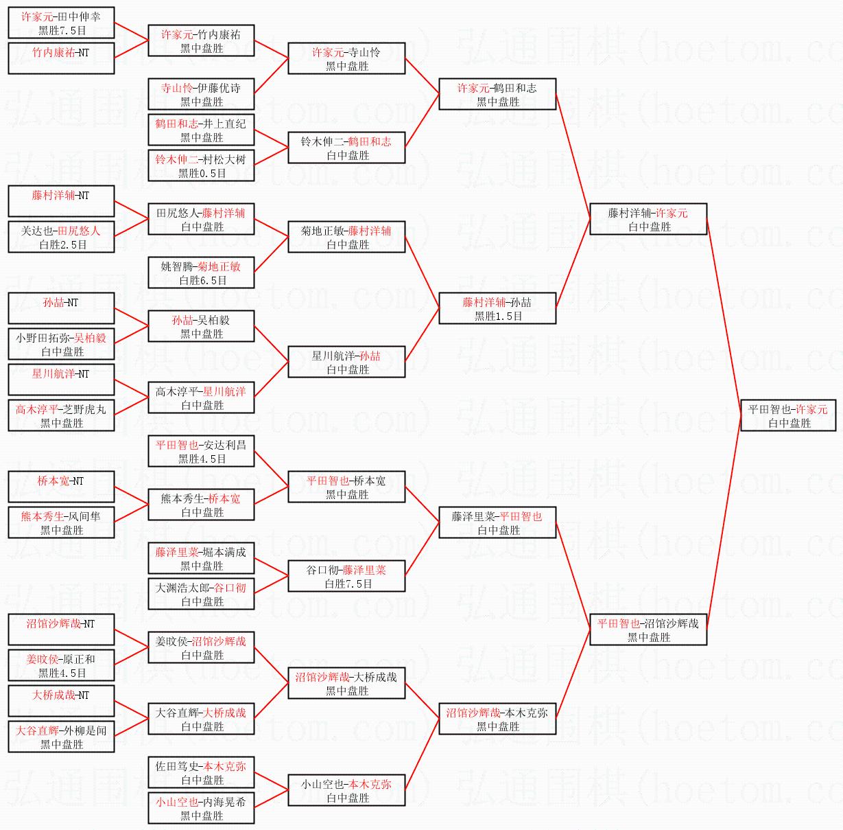 | 1.许家元获得冠军,平田智也获得亚军。决赛比分:许家元2:0平田智也。棋局: | ||