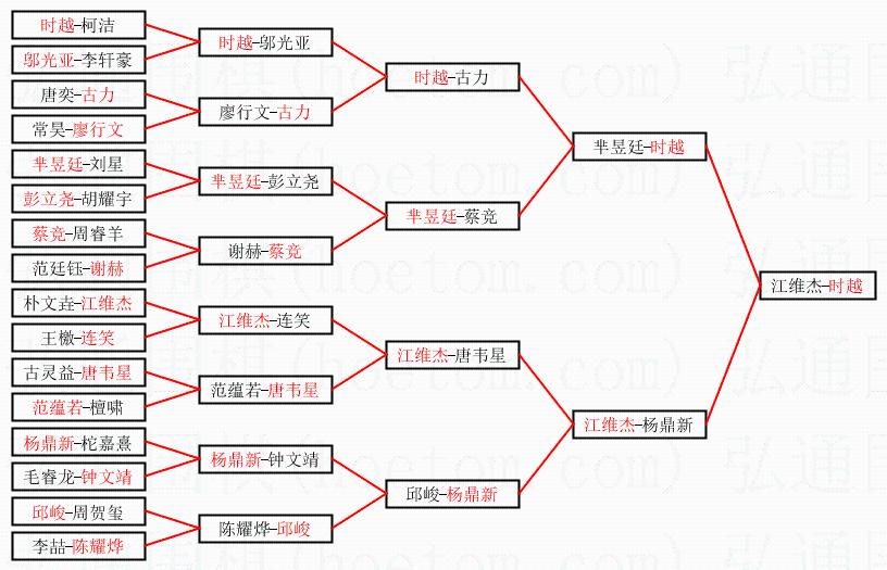 1.时越获得冠军,江维杰获得亚军。决赛比分:时越1:0江维杰。棋局: