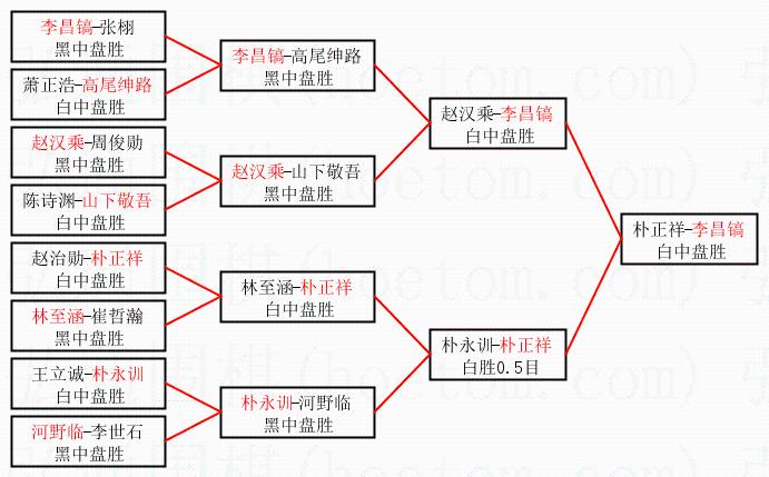 2.上半区半决赛李昌镐获胜, 比分:李昌镐 1:0 赵汉乘。棋局:
