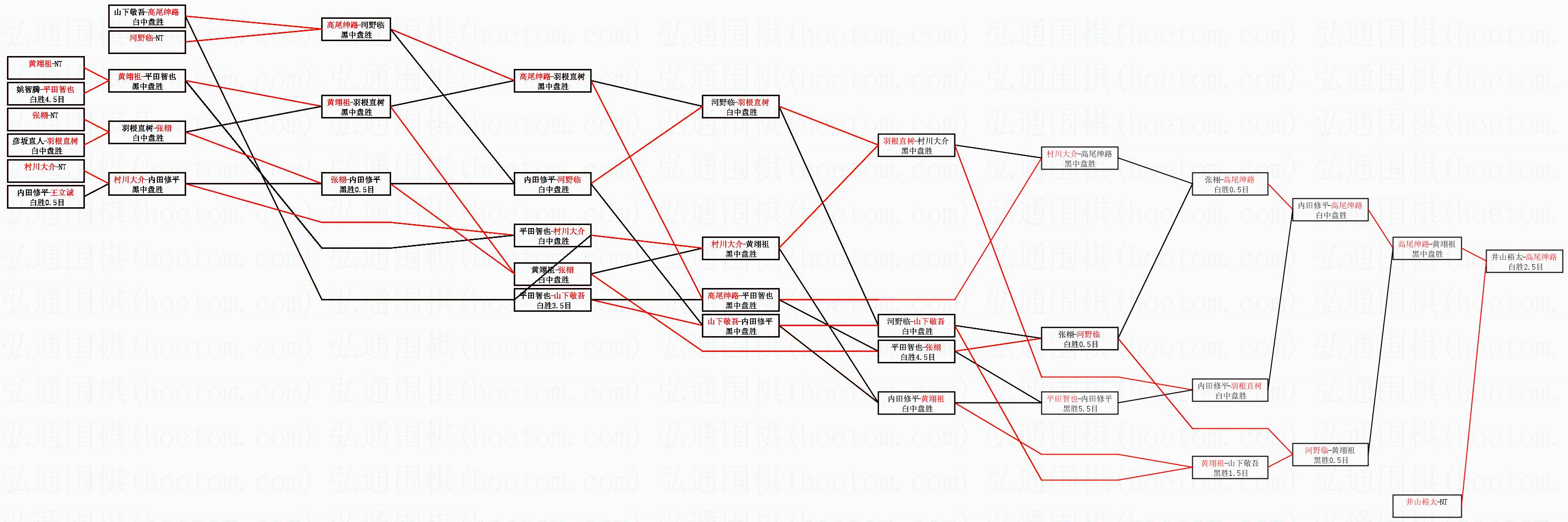 1.高尾绅路获得冠军,井山裕太获得亚军。决赛比分:高尾绅路4:3井山裕太。棋局: