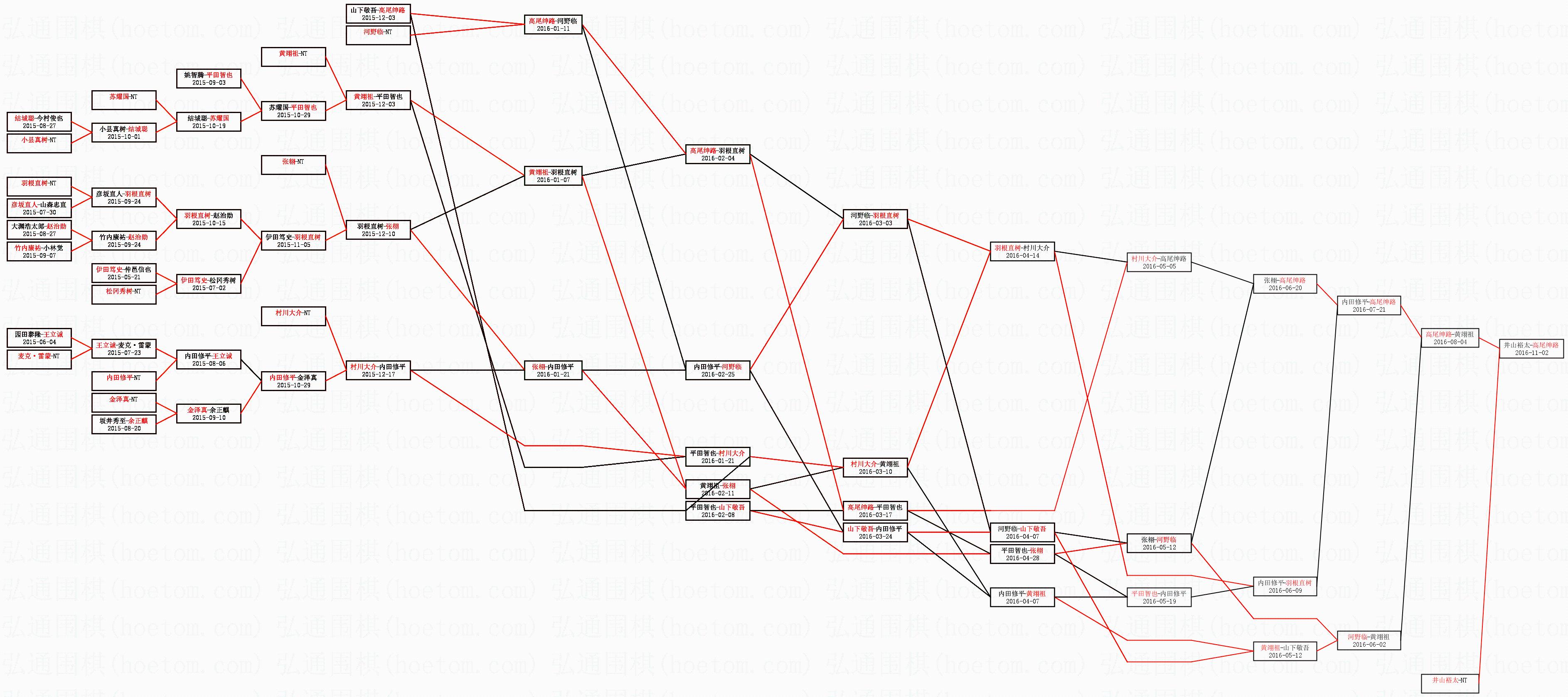 1.高尾绅路获得冠军,井山裕太获得亚军。决赛比分:高尾绅路4:3井山裕太。棋局: