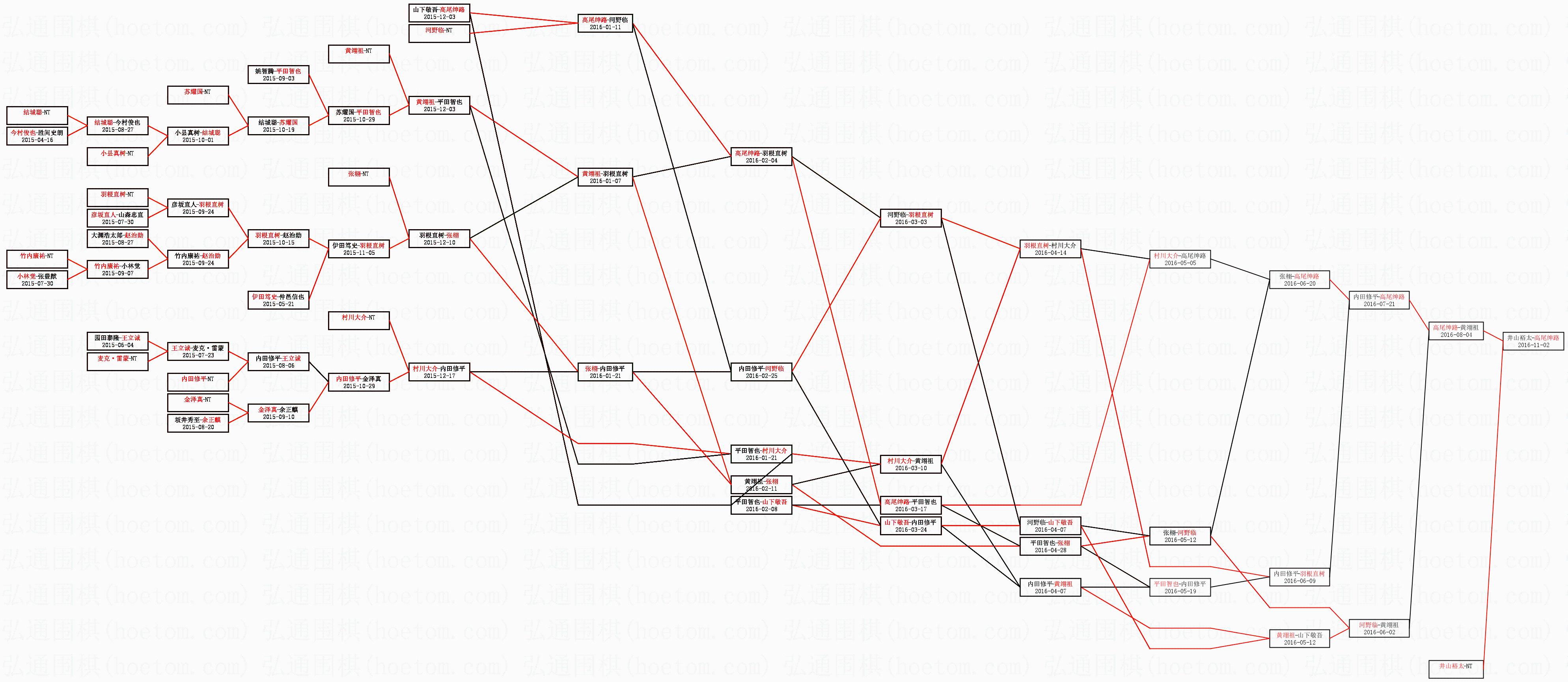 1.高尾绅路获得冠军,井山裕太获得亚军。决赛比分:高尾绅路4:3井山裕太。棋局:
