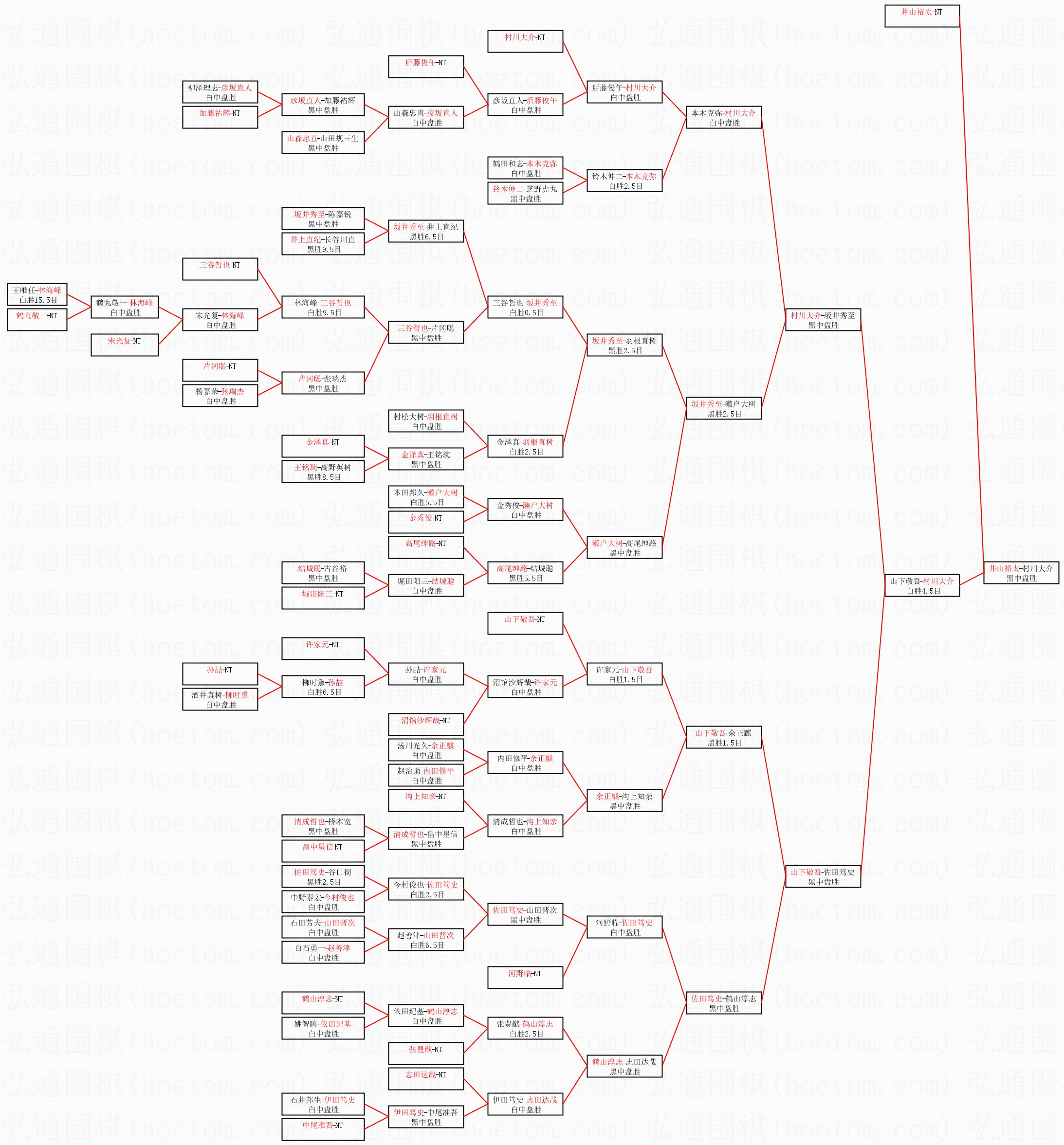 1.井山裕太获得冠军,村川大介获得亚军。决赛比分:井山裕太3:0村川大介。棋局: