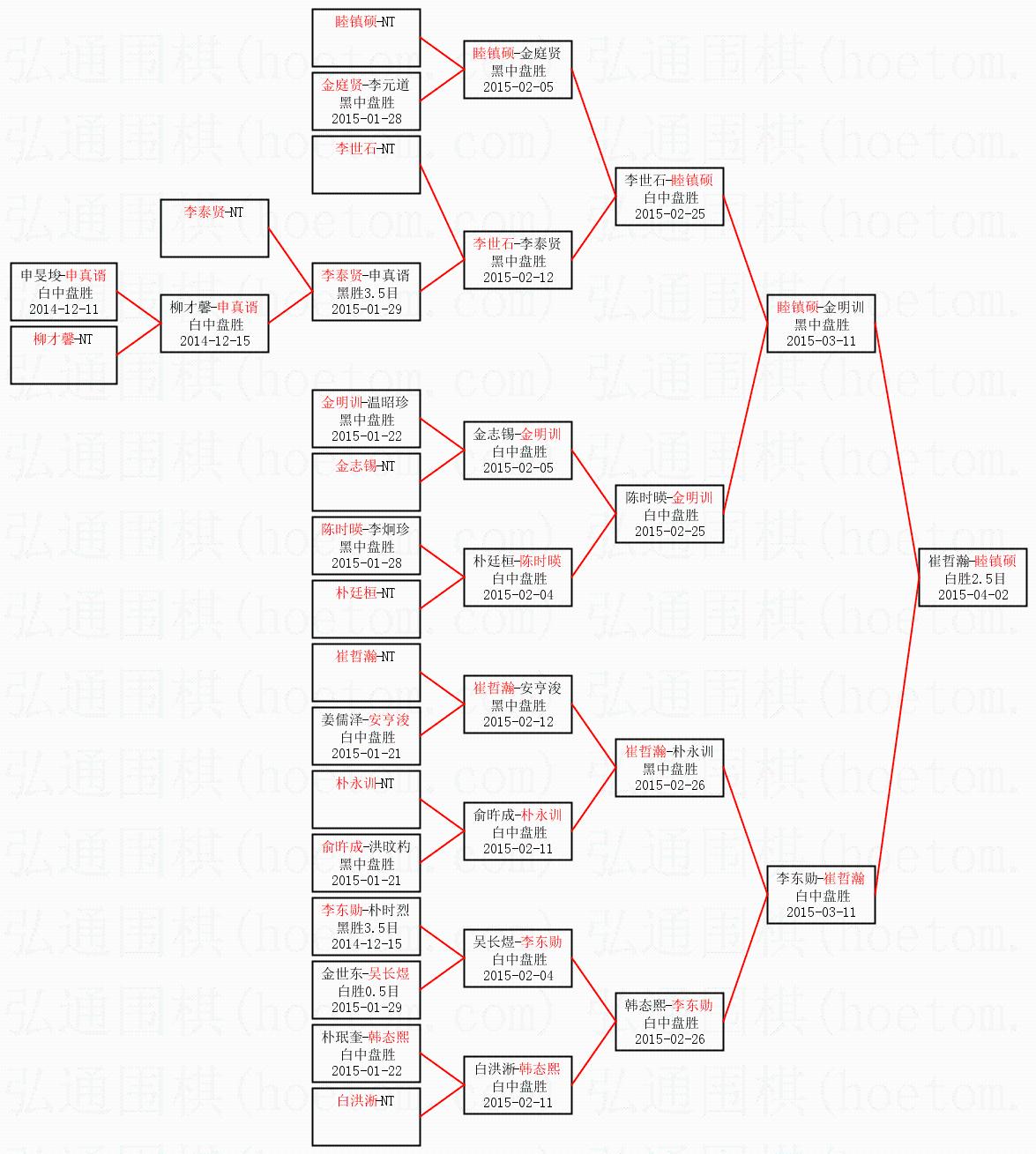 | 2015-04-02 崔哲瀚-睦镇硕 白胜2.5目 | ||