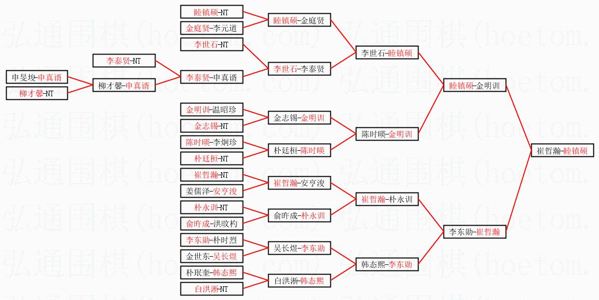 | 2.上半区半决赛睦镇硕获胜, 比分:睦镇硕 1:0 金明训。棋局: | ||