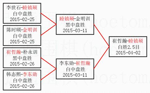| 2015-04-02 崔哲瀚-睦镇硕 白胜2.5目 | ||