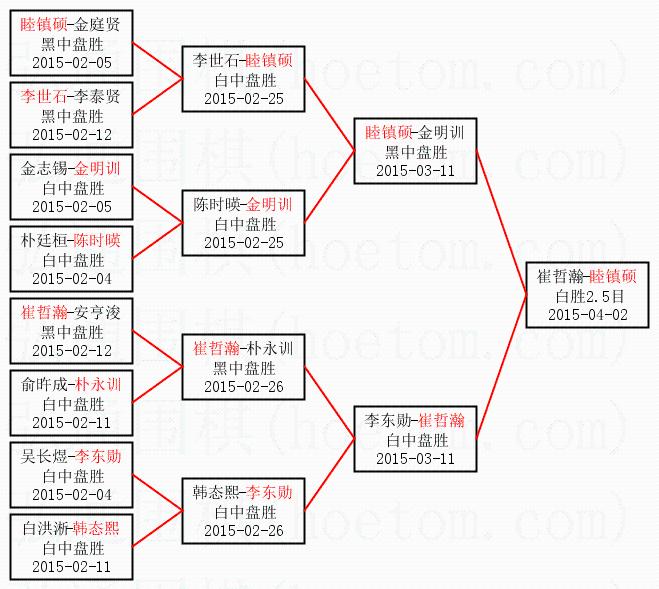 | 2015-04-02 崔哲瀚-睦镇硕 白胜2.5目 | ||