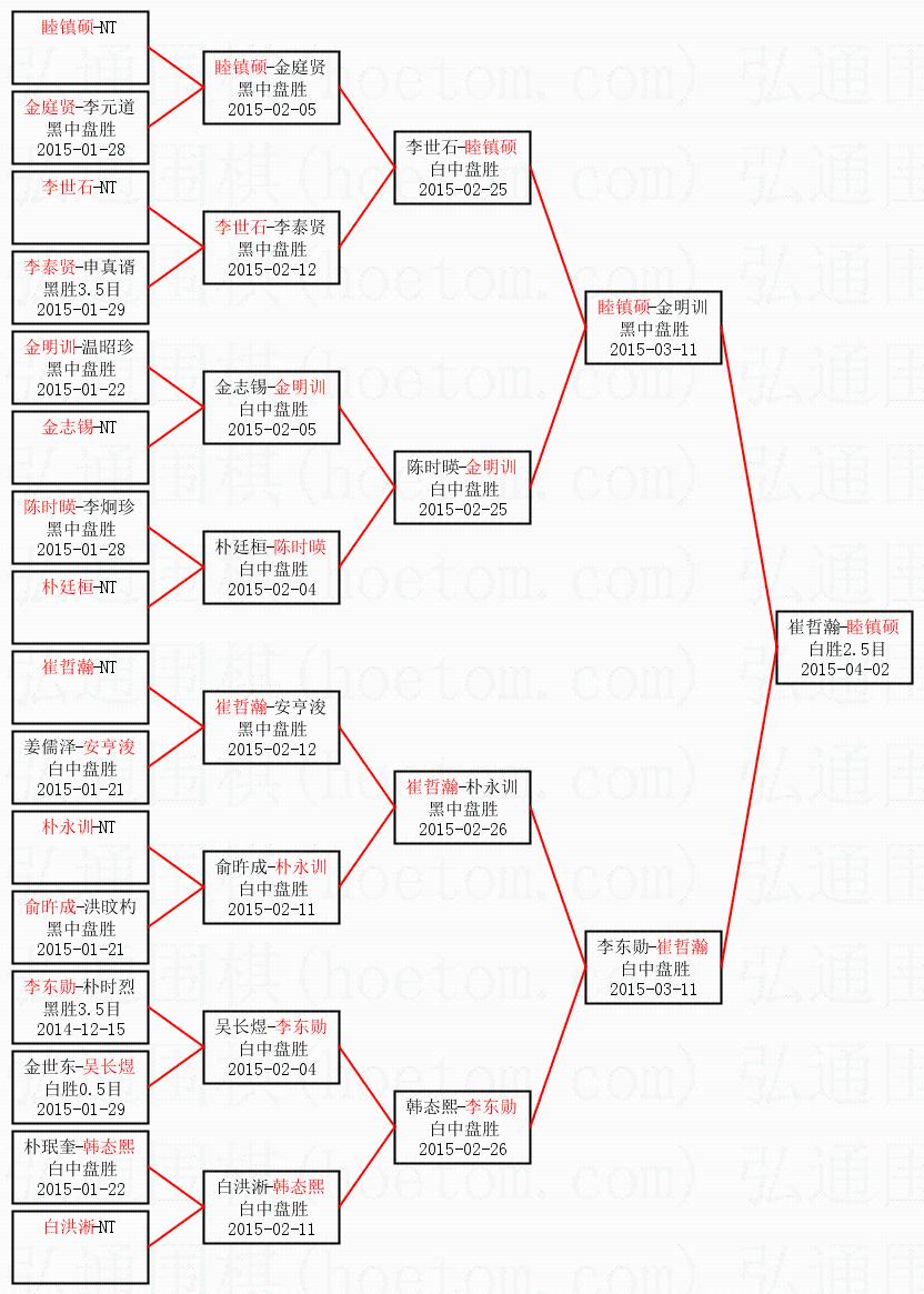 | 2015-04-02 崔哲瀚-睦镇硕 白胜2.5目 | ||