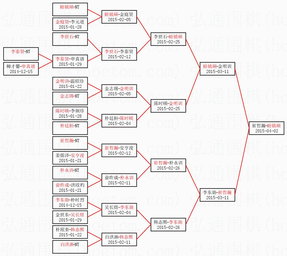 | 2015-04-02 崔哲瀚-睦镇硕 白胜2.5目 | ||