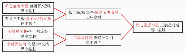 | 1.於之莹唐韦星获得冠军,王晨星时越获得亚军。决赛比分:於之莹唐韦星1:0王晨星时越。棋局: | ||